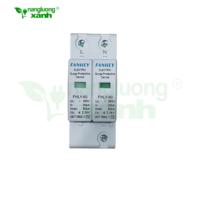 Chống sét AC FANHEY FHLY-60 385V Type 2, dòng cắt sét mạnh 60kA, bảo vệ tủ điện và thiết bị điện khỏi xung sét lan truyền. Lắp ray DIN, độ bền cao.