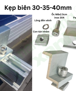 Sản phẩm kẹp biên 30mm – 35mm – 40mm phù hợp với nhiều độ dày tấm pin khác nhau, giúp quá trình thi công nhanh chóng, chính xác và an toàn.