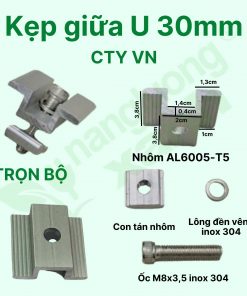 Kẹp giữa (Mid Clamp) là phụ kiện không thể thiếu trong hệ thống lắp đặt điện mặt trời. Bộ kẹp này có nhiệm vụ cố định các tấm pin nằm giữa các hàng, đảm bảo độ chắc chắn, an toàn và thẩm mỹ cho toàn bộ hệ thống.