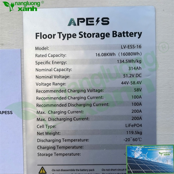 Thông Số Kỹ Thuật Pin Lưu Trữ APESS LV-ESS-16